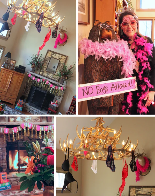 What would a good bachelorette party at the cabin be without lingerie hanging from the antler chandelier?! We raided the panties and bras at our local T.J.Maxx and I think the lady at checkout said something along the lines of “Well somebody is having a good time this weekend!” (Kat and I definitely had to ‘rock, paper, scissors’ on who was checking out with that intimate motherload.)